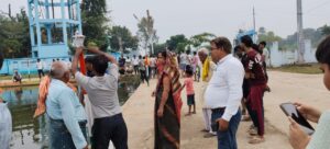 छठिया तालाब की सफाई में जुटे स्वच्छता कर्मी, मुखिया ने कराई लाईट की मरम्मति
